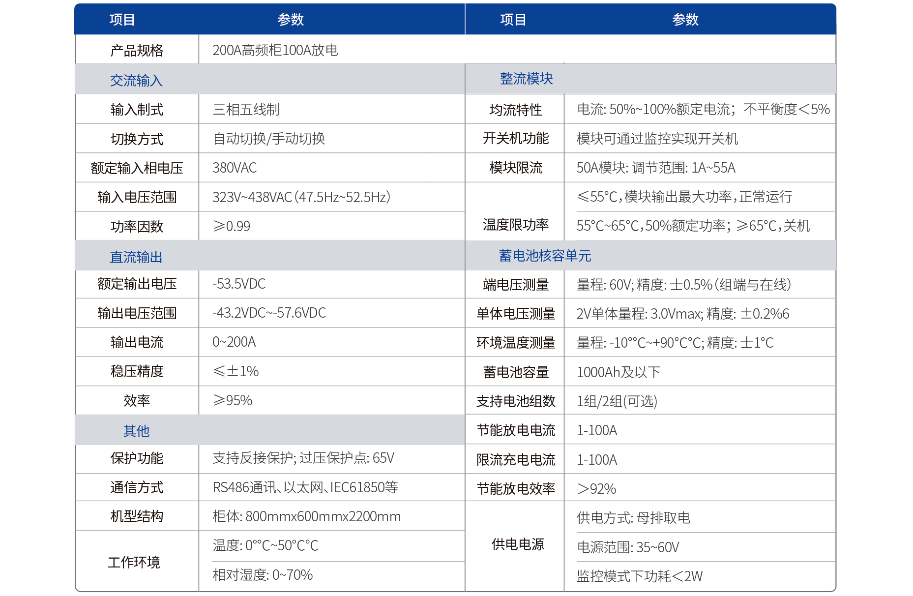 集成一体机管理、高频开关电源管理、核容设备管理、蓄电池管理等功能模块;支持参数设定功能,可自定义各模块的电压、电流、温度等阈值、配置高频电源均浮充状态等。